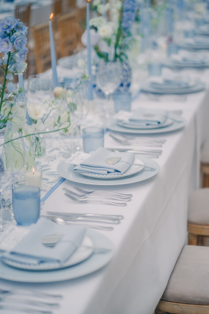 Blue is a whimsical and beautiful colour choice for marquee decor. Evoking a feeling of tranquility, using blue, can make guests feel peaceful and also intellectual which is a great result for any event.