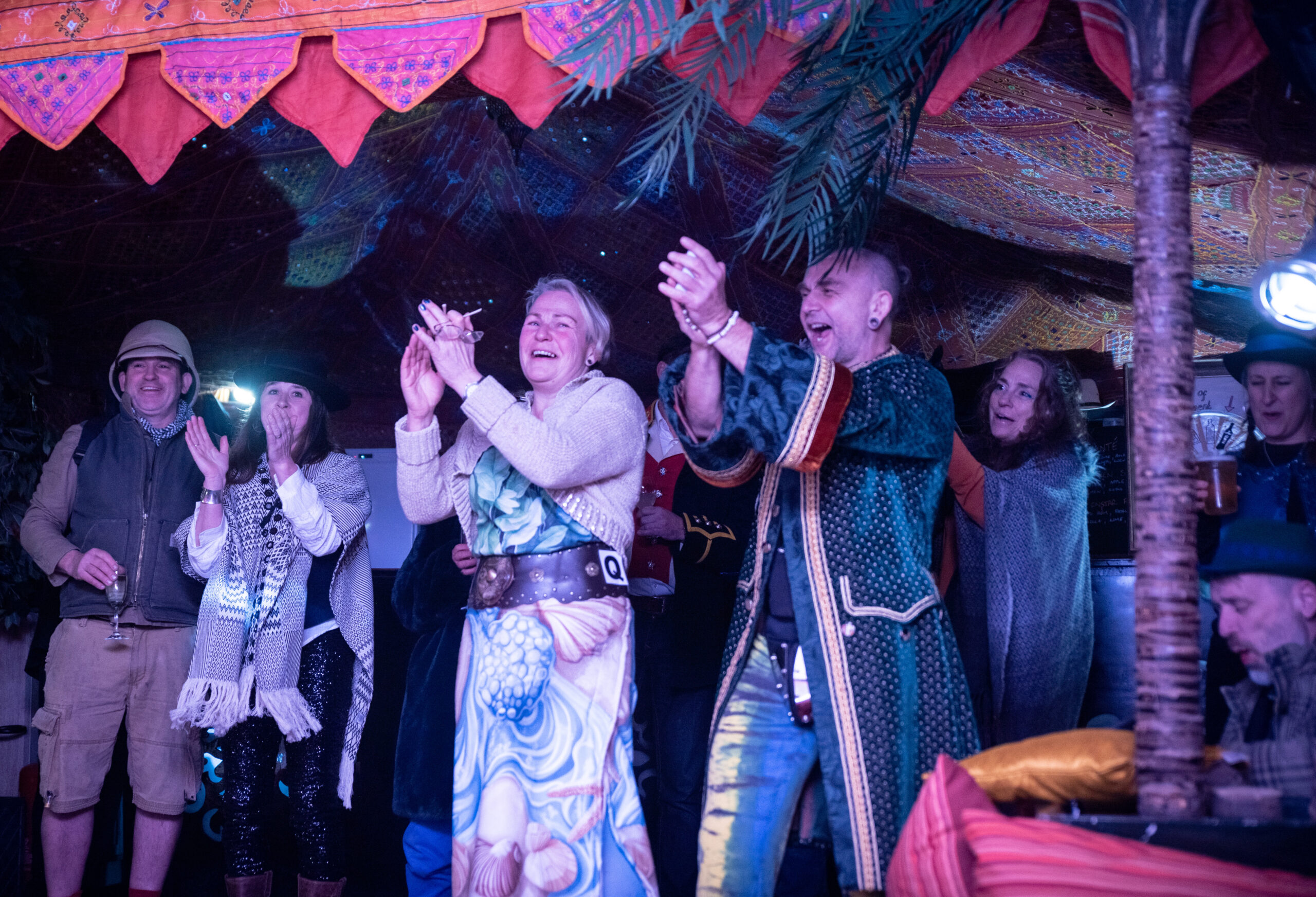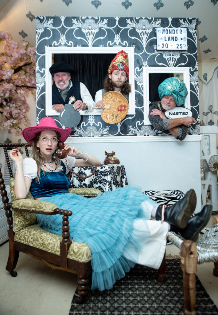 The musical entertainment was hosted in the secret party barn, where Laura Westcott performed a sound-scape ‘Metamorphasis’ to provide an ephemeral transition from day to the evening’s fun. After which guests were treated to a night of live music from Steve Norman, founder of Spandau Ballet & Bongo beckett jam sessions. Then the aptly themed (for Wonderland) “Almost Alice” impressed the crowd with a captivating original performance. Gramski amazed everyone with his quick witted and hilarious Improv rapping with his group ‘Made-Up’ after which DJ Ky Mossman took to the decks playing an eclectic and uplifting selection of tunes to keep everyone’s spirits high until late.