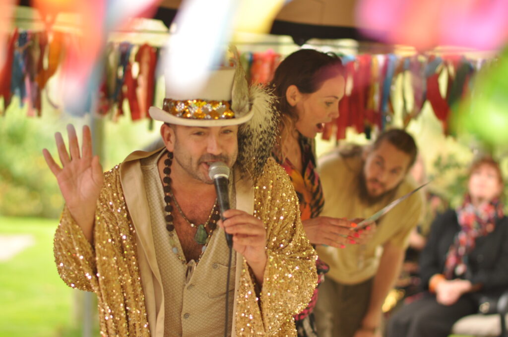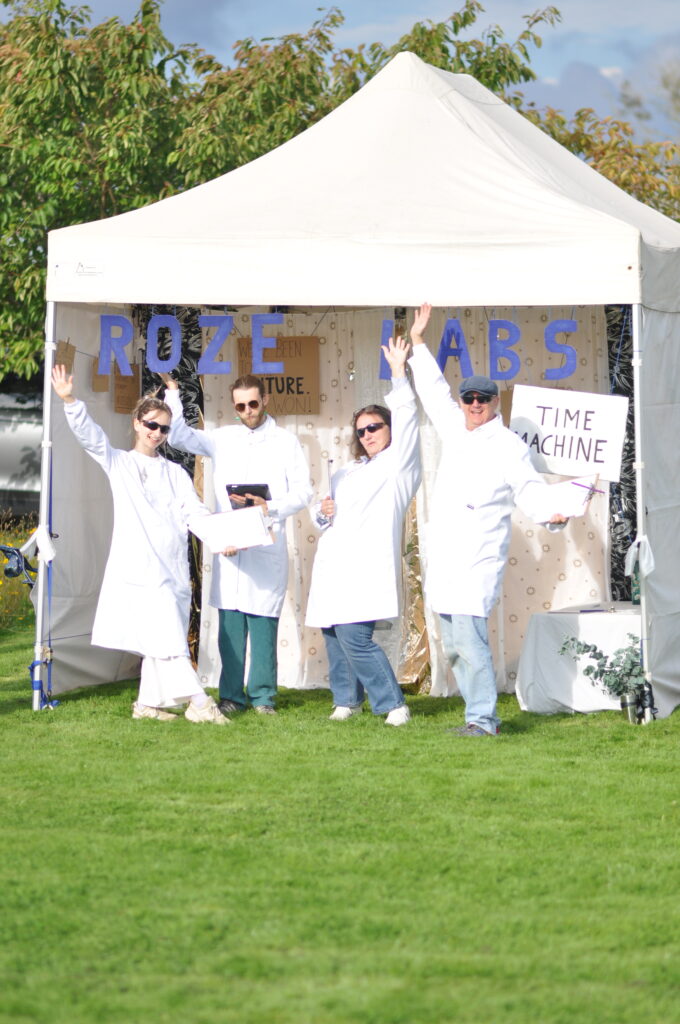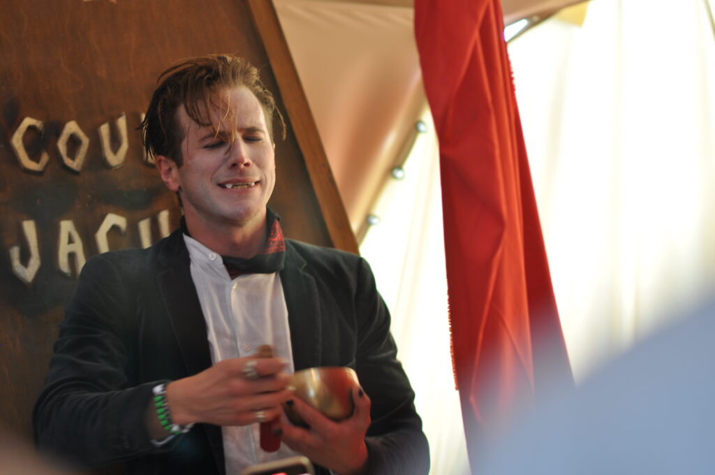 Vision board sessions got people creative courtesy of Sarah Bee, while Natural Ecstasy breathwork energized and raised vibrations with Pete Jordan, Ritual of Sound Healing with Madeleine Moore relaxed and inspired. Just to the side of the main Emerald tent was a separate area accommodating Raphael Cabon’s captivating Lucid Dreams holographic light immersion display which encouraged introspection and imagination while Count Dracula (aka) Jack Norman lured guests into the Dome to experience an immersive glimpse of Land of Limbo! Whilst on the front lawn, white-coated mad professors encouraged people into Roze Laboratories Time Machine!